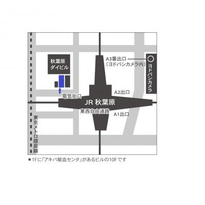 ※JR秋葉原駅電気街口すぐ、1Fに「アキバ献血ルーム」があるビルです。