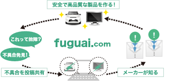 「Fuguai.com」は、製品の"不具合"に関する情報を、公表された情報、また消費者からの声、双方共に幅広く収拾・掲載することで、製品に対する「安心」を提供し、また同時に製品の品質向上を目差すサイトです。