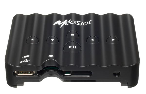 MéoSlot は、SD カードや、USB メモリに記録された動画/静止画/音楽のコンテンツをリモコンで簡単に再生することができ、特に動画についてはCPRM で著作権保護されたコンテンツをフルハイビジョン画質で再生することが出来ます。例えば、弊社で発売するアニメ、テレビドラマ、スポーツ、語学、映画など、幅広い分野のエンターテイメントコンテンツをQHD(960×540)の高解像度でMicro-SD に記録したコンテンツSD カード(モバ