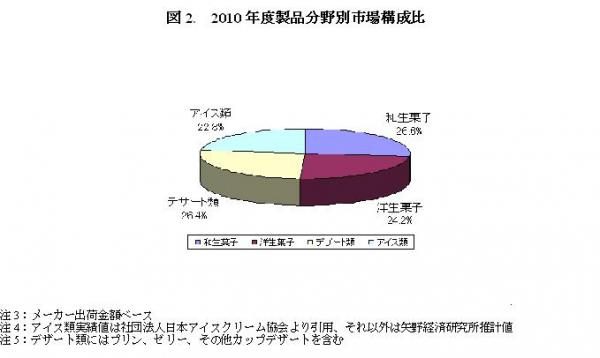 本調査では和生菓子、洋生菓子、デザート類(プリン、ゼリー、その他チルドデザート類、およびヨーグルトを含む)、アイス類(アイスクリーム類、氷菓)を対象とする。