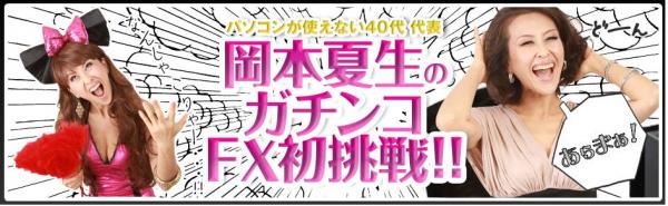 「円高なのは分かるけれど、FXって一体なんなの? どうやって取引すればいいの!?」というお客様向けに、岡本夏生さんが慣れないパソコンを操作してガチンコでFXに初挑戦する様子を、全編マンガ仕立てでお送りいたします。またコンテンツの冒頭では、バブル経済絶頂期のころの岡本さんの活躍を髣髴とさせる衝撃シーン満載の動画をご用意しております。