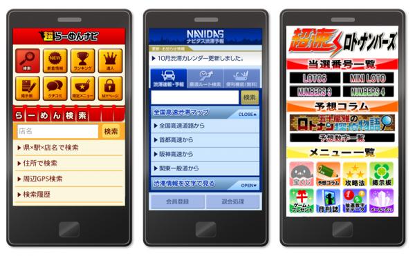 掲載サービスは、『超らーめんナビ』『ラブホナビ』『ナビダス渋滞予報』『超速ロト・ナンバーズ』の4サービスです。