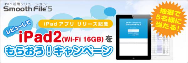 Smooth File5をご導入頂きレビューして頂いた法人様に抽選でiPad2をプレゼントいたします。