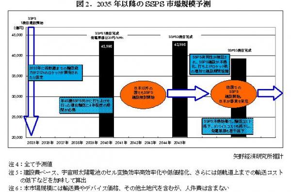 宇宙太陽光発電所(SSPS)とは巨大な太陽電池パネルを持つ発電衛星を上空36,000kmの静止衛星軌道に打ち上げ、24時間365日発電し続け、地上で1GW(100万kW)の電力を得る構想である。軌道衛星上から地上への送電方法としてマイクロ波電力伝送システム採用が検討されている。
