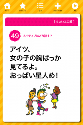 『セイン’s3分英語』は『その英語、ネイティブはカチンときます』などのベストセラーを数多く世に送り出しているセイン先生による面白おかしい英会話アプリです。