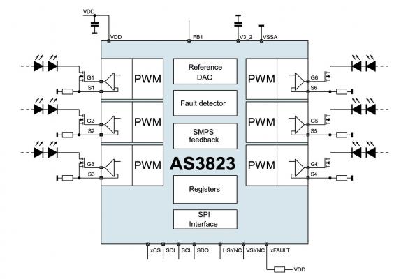 AS3822とAS3823は、それぞれ8チャネル、6チャネルのLEDドライバICで、先ごろ発売したLEDドライバ 16チャネルの AS3820と12チャネル のAS3821と完全互換品です。この互換性により、メーカーは自社の全てのエッジ型照明のLEDテレビ製品群で同一のハードウェア設計やソフトウェアを使用することができます。このポートフォリオの全ドライバICには、エネルギー消費を可能な限り最小に抑えるaustriamicrosystemsの改良型デジタル式の電力フィードバック制御技術を採用しています。さらに、高性能な調光機能は、電力消費を抑えると共に、最新の3Dテレビの設計や最高画質の実現に対応します。