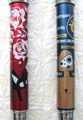 それぞれ赤と青のメタリックな軸に、高級感ある蒔絵風の印刷で
