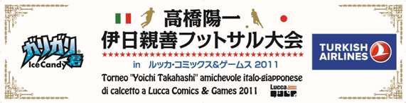 今年は、イタリア国内でも絶大な人気を誇る日本マンガ『キャプテン翼』の原作者である高橋陽一先生がこの「ルッカ・コミックス&ゲームス」を訪れ、東日本大震災の復興のためのチャリティサイン会を行うと同時に、「高橋陽一 伊日親善フットサル大会 in ルッカ・コミックス&ゲームス 2011」を行い、日本・イタリアから合わせて4つの選抜チームが対戦するフレンドリーマッチを開催します。