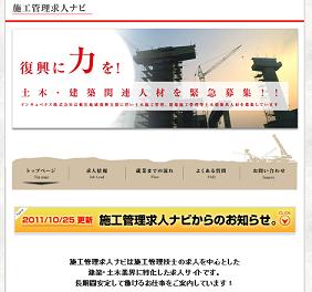 こうした施工管理技士などを対象とし、主に震災復興に関連した求人情報を案内する、専門求人サイトとして、インキュベクスは4月に「施工管理求人ナビ」を開設し、運営を行って参りました。