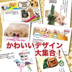 ワンちゃんやご家族の写真でオリジナル年賀状を作れます。
