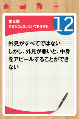 ※本アプリは株式会社ユナイテッド・ブックスより2010年7月に発行された『がんばっても成果は出ない 凡才のための超現実的サバイバル術』のiPhone版、カードブックアプリです。