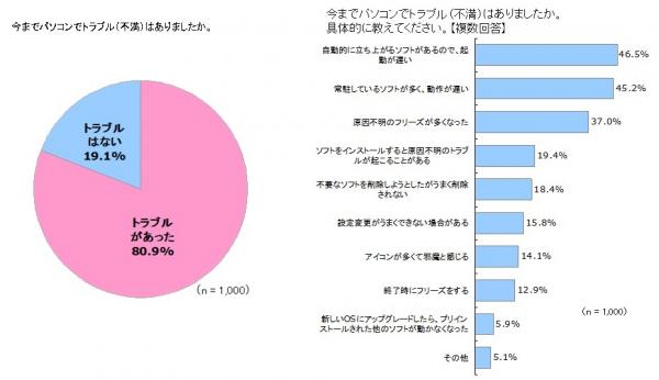 ・8割の人がパソコンのトラブルを経験。多くは「起動、動作の遅れ」「フリーズ」