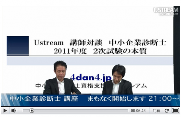 「中小企業診断士 2011年度2次試験の本質」をUstreamで放送しました。