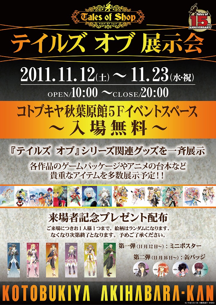 (東京都千代田区外神田1-8-8)で、11月12日(土)から「テイルズ オブ 展示会」が開催される。