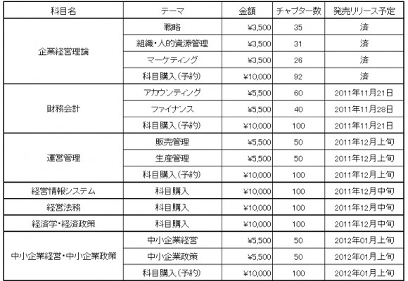 今回のリリースにより、企業経営理論 科目分として予定しておりました3つのテーマ、