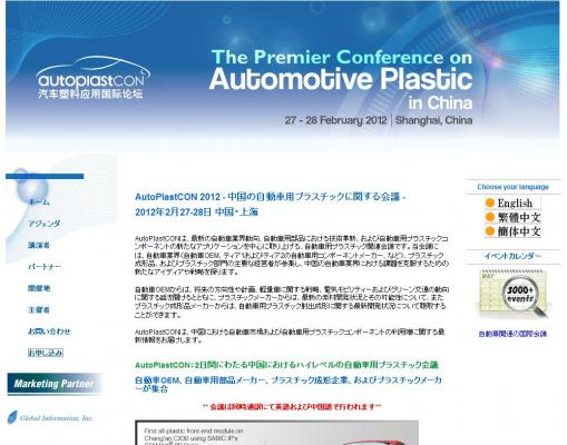 株式会社グローバル インフォメーションでは、皆様の利便性を図る為に、日本語、英語、韓国語、中国語で「AutoPlastCON 2012 - 中国の自動車用プラスチックに関する会議」の情報を提供するとともに、会議の参加のお申し込みを承っております。