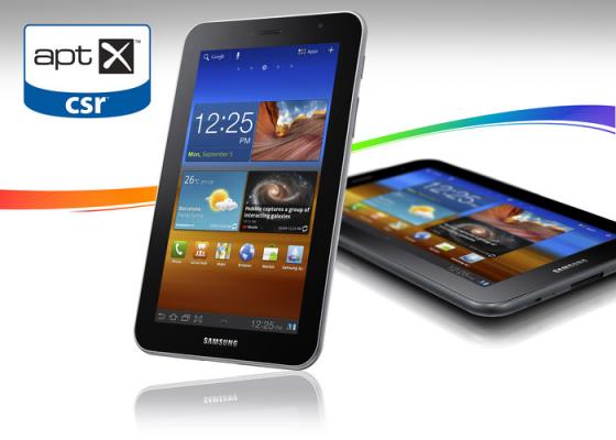CSR plc(英国ケンブリッジ、ロンドン証券取引所 略号:CSR.L、以下、「CSR」)は本日、Samsung Electronics社とのライセンシングパートナーシップ継続の一環として、aptXTM Bluetoothオーディオコーデックが発売予定のSamsung GALAXY Tab 7.0 Plusに採用されることを発表しました。最も人気の高いAndroidベースのタブレットコンピューターの後継機に搭載されるCSRのaptXオーディオコーデックは、CD品質のステレオオーディオをaptX対応の各種BluetoothステレオスピーカーやSamsung HS3000などのヘッドセットに対して、ワイヤレスで配信することを可能にします。