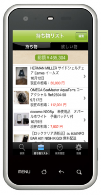 適切な商品を登録出来ます。また、あなたの持ち物リストの総額を一目で確認することができます。