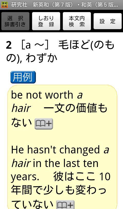 同じ検索部分から英和、和英が検索できるので難しい操作は入らずはじめて使用される方でも