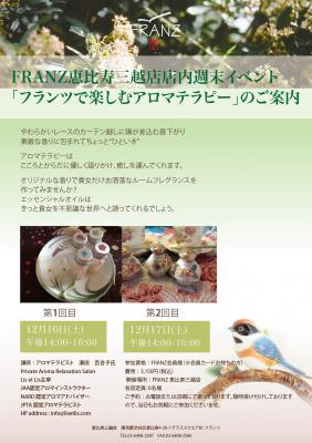 台湾専門の磁器メーカーフランツコレクションは恵比寿三越フランツにて12月10日(土)と12月17日(土)に「フランツで楽しむアロマテラピー」のイベントを開催致します。
