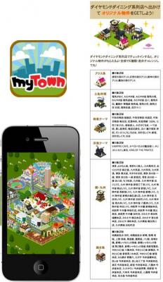 MyTown日本版は、日常をGamify(ゲーミファイ)するをコンセプトに、GPSを活用し、ユーザーが実際に訪れた場所にチェックイン(現在地を記録すること)することで、チェックインした建物を購入しアプリ内の自分の土地へ建てたり、建物にデコレーションしたりし、理想の街づくりを楽しめるアプリです。今回のダイヤモンドダイニングの登場で、新たにダイヤモンドダイニング系列店173店舗の付近でチェックインをすると店舗の種別に応じて全部で6種類の建物デザインが建設可能になります。