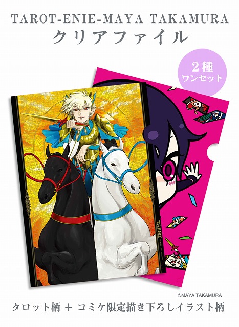 12月発売のイラストレーターMAYA氏による全描き下ろしのタロットカード「TAROT -ENIE- MAYA TAKAMURA」イベント限定セットを販売。タロットカードに加え、コミケ限定のクリアファイル(描き下ろし含む)、メッセージペーパー、MAYA氏オリジナルデザインのショッパーが付属。