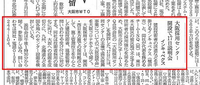 <日刊建設通信新聞記事「大阪採用センター設立で17日説明会」>