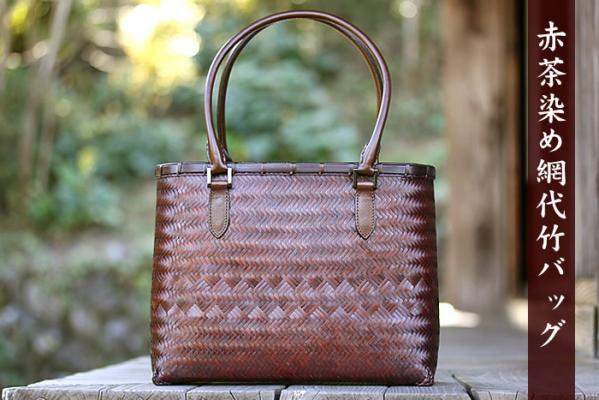 赤茶染め網代竹バッグがリニューアルされました。赤茶染め網代竹バッグは、革の
