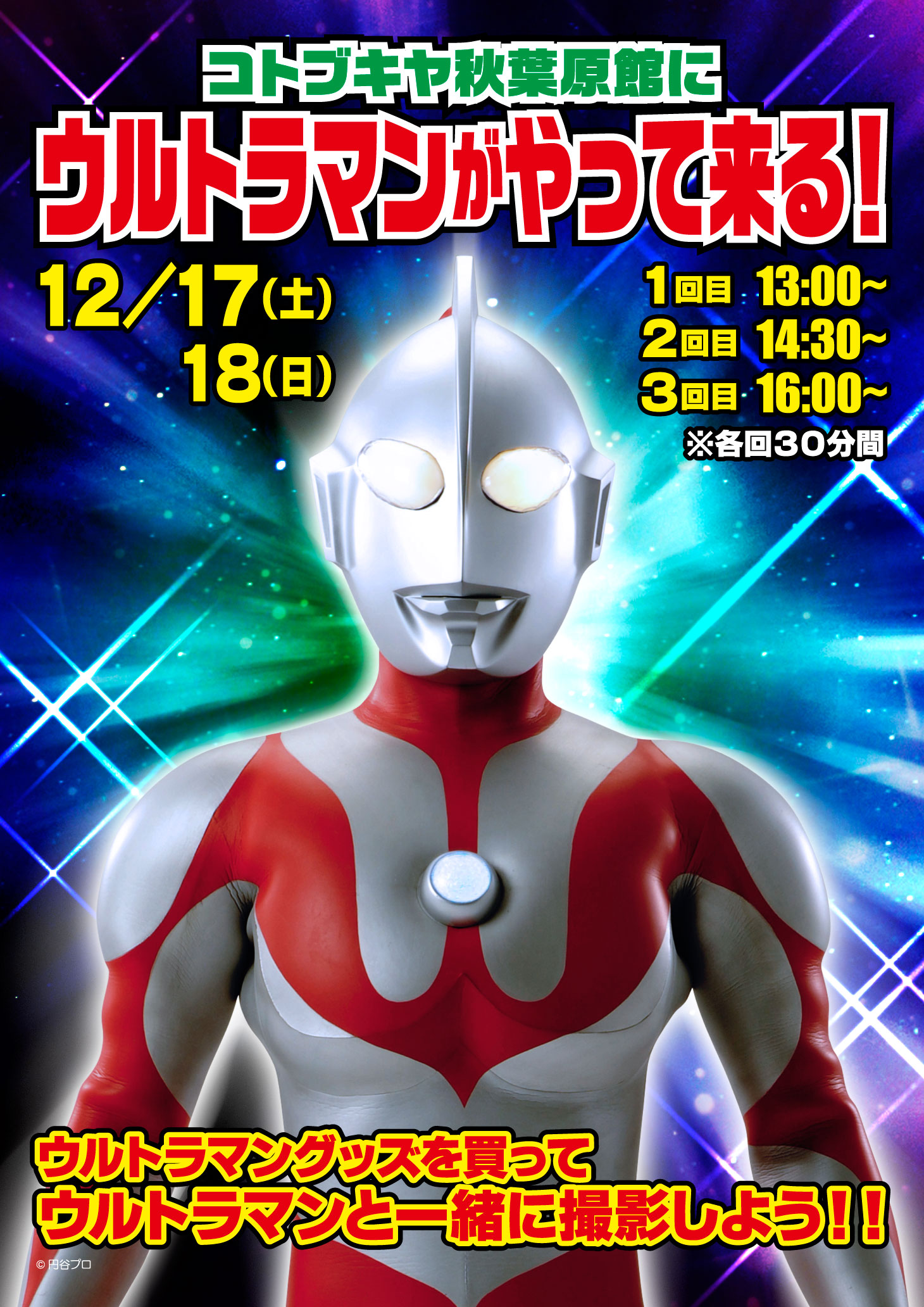●13:00~ ●14:30~ ●16:00~ の1日3回にてウルトラマンが登場予定
