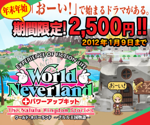 株式会社アルティ(本社:福岡県福岡市 代表:宮崎慈彦)は、PSP(R)「プレイステーション・ポータブル」用ゲームソフト『ワールド・ネバーランド~ナルル王国物語~』本編について、PSストアでの価格を1300円値引きして配信する年末年始ディスカウントキャンペーンを2011年12月15日から2012年1月9日の期間で実施します。