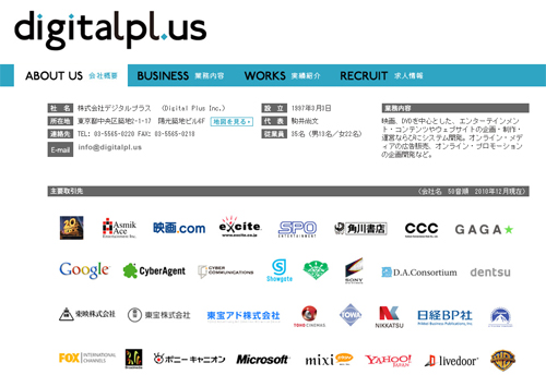 事業概要 映画、DVDを中心とした、エンターテインメント・コンテンツやウェブサイトの企画・制作・運営ならびにシステム開発。オンライン・メディアの広告販売、オンライン・プロモーションの企画開発など