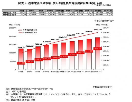 本調査における携帯電話市場規模には、スマートフォンを含む。但し、PHS、デジタルフォトフレーム、タブレットPC等は含まない。