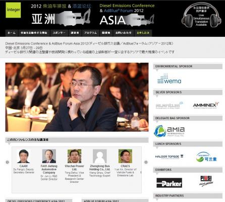 会議:「Diesel Emissions Conference & AdBlue Forum Asia 2012(ディーゼル排ガス会議/AdBlueフォーラム:アジア-2012年)」
