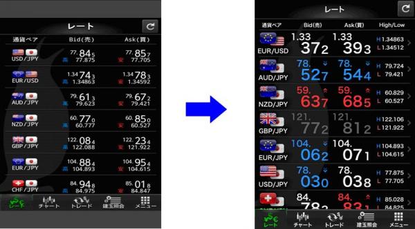 表示項目のレイアウト変更を行ってレートの文字を拡大させるなど、視認性を向上させました。