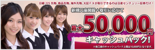 この度当社では、2012年1月~3月末までに対象商品の新規口座開設されたお客様に対して、最大50,000円までキャッシュバックするキャンペーンを実施します。