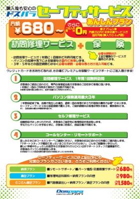 ドスパラ セーフティサービス「あんしんプラン」は、ドスパラにて新品のデスクトップパソコン・ノートパソコンのご購入時にご加入いただける、訪問修理サービスをはじめとした充実したサポートと、長期保証を組み合わせた、月額サポートサービス商品です。