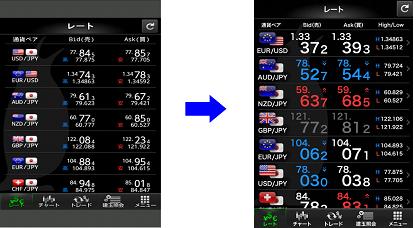 表示項目のレイアウト変更を行ってレートの文字を拡大させるなど、視認性を向上させました。