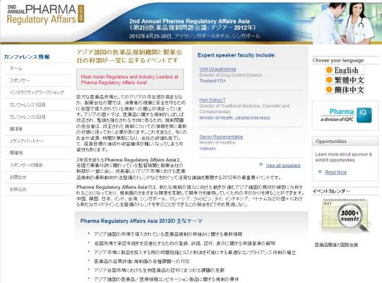 会議:「2nd Annual Pharma Regulatory Affairs Asia 2012 (第2回医薬品規制問題会議:アジア-2012年)」