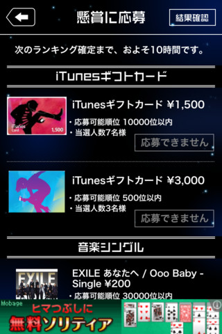 賞品は今のところ「iTunesギフトカード」「音楽アルバム」「音楽シングル」「映画」「ミュージックビデオ」などがあります。