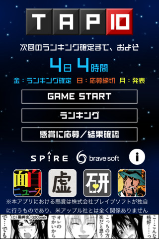 株式会社ブレイブソフト(本社:東京都港区、代表取締役:菅澤英司)は、株式会社スパイアと共同でiPhoneアプリ、無料懸賞ゲーム「当たる!懸賞ゲーム - 懸賞TAP10 -」を1月18日、リリース致しました。