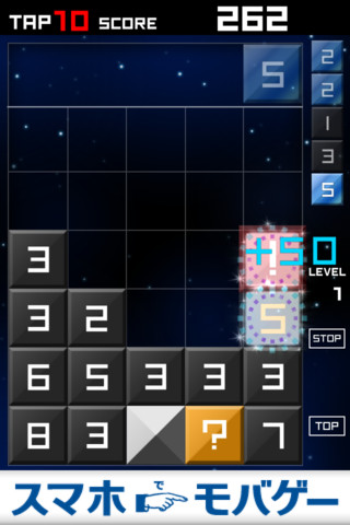 ゲームの内容は、パネルの数字の合計を「10」になるようにタップしてパネルを消していく、というものです。