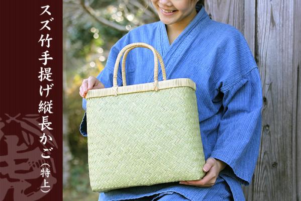 スズ竹手提げ縦長かご(特上)は、スズ竹市場かごと同じ素材の堅牢でしなやかな