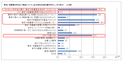 なぜ「ナシ婚」を選んだのか。みんなのウェディングが行ったインターネット調査 ※によると「挙式、披露宴を行わなかった理由」は