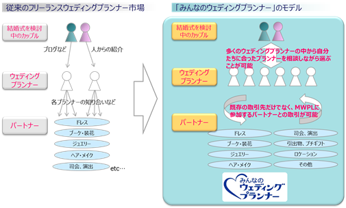 本サービスは、フリーランスとして独立したウェディングプランナーを支援するとともに、