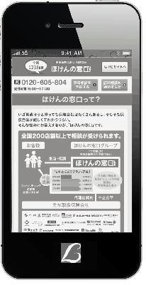 株式会社ライフプラザホールディングス(本社:東京都渋谷区、代表取締役社長:今野 則夫、以下LPH)が運営する「ほけんの窓口」グループは2000 年に来店型保険ショップのパイオニアとして発足して以来、2006 年2 月に全国50 店舗、2008 年2 月に全国100 店舗、2011 年4 月に200 店舗、2012 年1 月31 日現在238 店舗と店舗展開を加速し続け、年間7 万件以上の新規のお客様にご利用いただいております。このたび、当社をより身近な存在としてお客様にご利用いただくために、スマートフォン専用のサイトを本日2012 年1 月31 日(火)にオープンいたします。