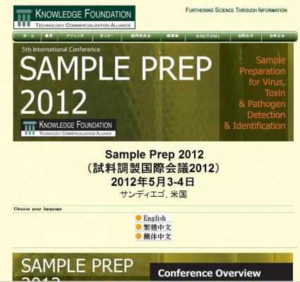 株式会社グローバル インフォメーションでは、皆様の利便性を図る為に、日本語、英語、韓国語、中国語で「Sample Prep 2012 (試料調製国際会議 2012)」の情報を提供するとともに、会議の参加のお申し込みを承っております。