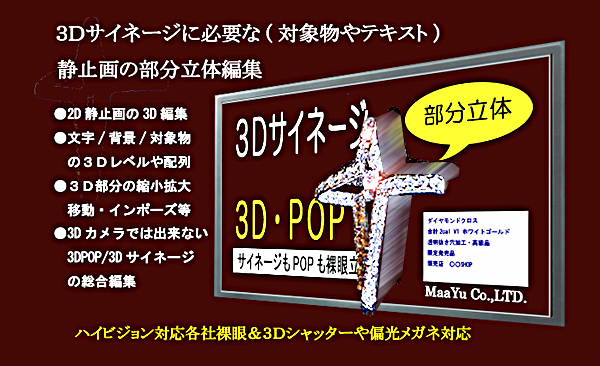 1つの写真等の一部分を3Dに編集して3DハイビジョンTV等で3Dサイネージや