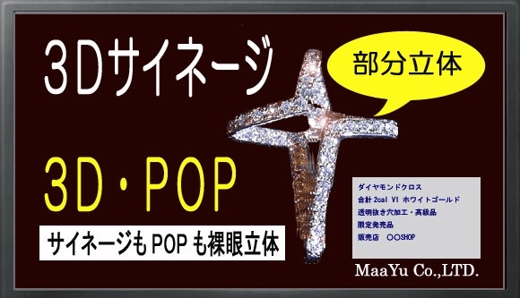 裸眼立体にはお勧めです。3Dサイネージ(電子広告)や店舗など3DPOP表現には、