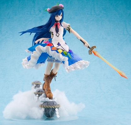原型製作は、第1弾「博麗霊夢」に続き、高い造形技術と独創的な空間構成で数々の人気美少女フィギュアを世に出してきた「桜前線」のひろし氏。特徴的な衣装や風になびく髪も、繊細に造り込まれています。作中での印象的なアイテム「緋想の剣」や「要石」なども巧みに表現されていて、天子の魅力とその世界観が凝縮されたフィギュアとなっています。