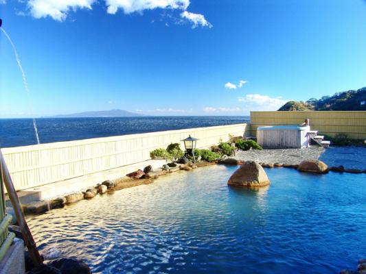 「伊豆大川温泉ホテル」は、リピーターの多い温泉宿としても定評があり、とくに相模灘を一望し、夜は満天の星空、朝は太平洋から昇る日の出を独り占めできる自家源泉掛け流しの展望露天風呂、それに伊東港で朝水揚げされた新鮮な魚介類と料理長自ら探し求めた契約農家からの朝どれ野菜などの厳選素材を使った料理が人気となっています。